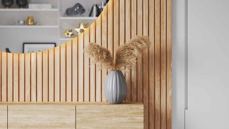 پنلها و روکشهای عمودی، مانند Shiplap، یکی از راههای مؤثر برای بزرگتر جلوه دادن سقفها هستند. این کار چشم را به سمت بالا میکشد و ارتفاع اتاق را بلندتر از آنچه هست نشان میدهد. حتی اگر بودجه کافی برای پوشش تمام دیوارها ندارید، ایجاد یک دیوار برجسته با پنلهای عمودی در ارتفاع بیشتر نیز میتواند تأثیر مشابهی داشته باشد و به فضا حس عمق و ارتفاع بدهد.